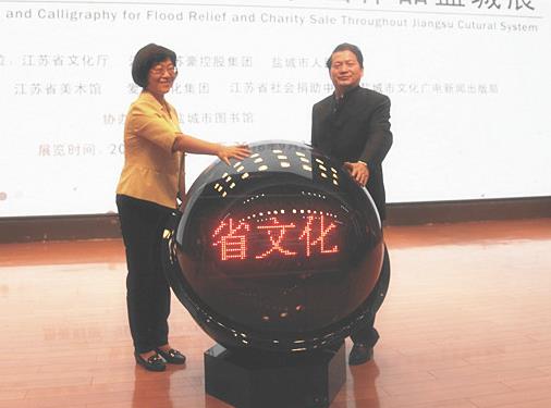 “大愛如濤——江蘇省文化系統賑災義賣書畫作品展”今在省美術館開展 徐耀新、趙順盤共同為其揭幕 周勇總裁致辭